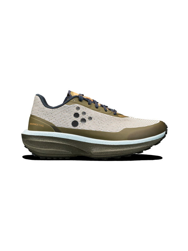 Conquer the trails with the Men's Craft Sportswear Endurance Trail shoes. Perfect for offroad escapades, these shoes boast a sturdy TPU enforced upper to shield and stabilize your foot. The Px foam midsole offers a lively and responsive ride, ideal for all terrains. The low-profile lugged outsole provides excellent traction on both well-maintained tracks and uneven terrain. Experience unmatched durability and comfort with every stride in the Endurance Trail shoes, designed for trailblazing enthusiasts.
