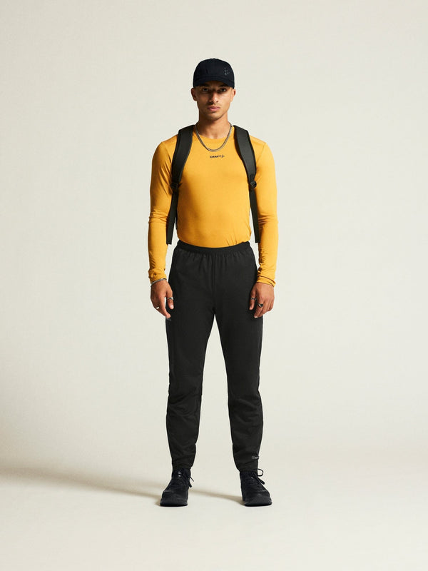 Challenge the elements in the Craft Sportswear Men's Pro Hydro Pants 2, expertly designed to protect against wind and water with Ventair 3L stretch fabric. Customizable comfort is assured with adjustable draw cord waistband and elastic leg endings. Featuring two concealed zip pockets, dart-enhanced knees, jersey at the back yoke for moisture wicking, and visibility enhancing reflective prints at the front and back.